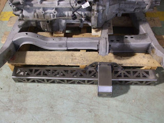 That was the start, the car sat during the winter, very little was done to the chassis, but some things were done to the subframe. Jan 23rd 2010 the frame was blasted and engine test fitting was started, I had to cut up and custom make some new parts to support the engine.