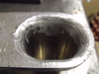 Yesterday I started intake manifold welding, please keep in mind this is about the second time I have tried to TIG weld aluminum and its my first time trying to weld a thick material (3/8") to thinner material (1/8"), I had many problems, nothing that won't be cleaned up. Also I found out from my boss a way to get a better weld when welding materials with substantial thickness difference (preheat the thicker material with a propane torch), which I will be trying out tomorrow, so I hope it helps with welding quality and speed, so onto the pictures. What you are seeing is the 3/8" plate that will get welded to the intake plenum, with the trumpet style intake runners that should speed up air velocity, the curved entry to the intake runners should also the airflow into the ports and keep runner turbulence to a minimum. After this I will be welding the runners to the intake manifold flange (which is 1/2" aluminum) and after that I will be welding on the intake plenum.