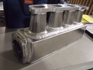 Got the intake manifold welded and back today, they did an amazing job on it, there is a big problem that I am going to have to work on, unfortunately I didn't do enough test fitting and the intake plenum is in the way of the engines coolant line, I already have a couple idea's to get around this issue, so it shouldn't be that bad.