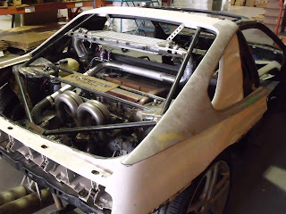 In one of the pictures you will see the trimmed piece of a GT fastback that will ultimately be glassed onto the original notchback. The funny thing is that I was looking at the intercooler/support bar/notchback and had the idea that I could install a curved window that could still keep the notchy look but still have the room for the intercooler.......think about the late 80's mustang coupe rear window, but then the more I thought about it the more I didn't like the idea.
