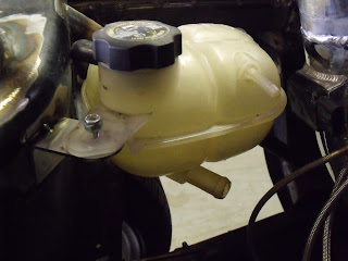 Progress has been made with other small pieces on the car, I have welded in the meth pump support bracket, nitrous solenoid bracket and engine coolant overflow tank. Tomorrow I have a new front trunk tray (for the lack of a better term, basically its going to be a larger lower trunk area where the spare tire usually goes) I made it larger so that I can fit a battery and the nitrous tank, also I have a battery bracket and meth tank brackets that will mount to the car.