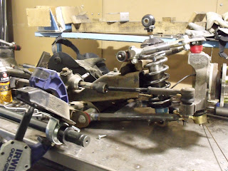 This past weekend I got the 85 chassis trimmed and added the rear mounting location for the 88 front subframe, also started putting all the other components on the front subframe. Today I welded filler pieces on the upper control arm mounting location, also mocked up a couple places to mount the swaybar, not sure but I might mount the swaybar on the bottom of the subframe instead in the stock location......only reason why is I think I can get a longer arm and possibly have more clearance for other components in the front suspension. I will try mocking it up a bit more before I make it a permanent decision.