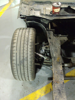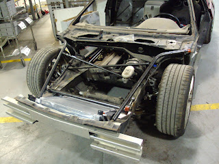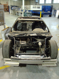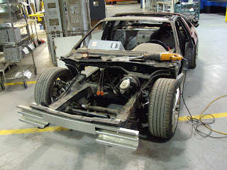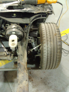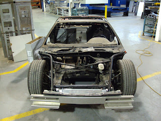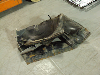 Finally got around to doing some metal work this weekend.........while I was broken down I got to thinking about the car a bit more, decided on a few things and one of those what in regards to the front end. I got tired of lifting the car to look and play with the front suspension, so I decided to cut off the upper frame members, wheel well liners, headlight supports, etc etc. With this decision I also realize that there isn't any support for the fenders, bumper, hood so I'll be building a one piece front clip using the stock pieces.