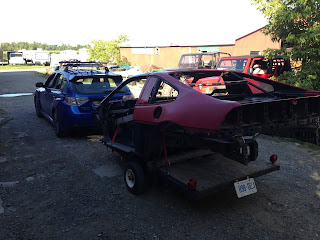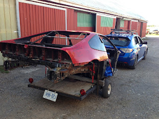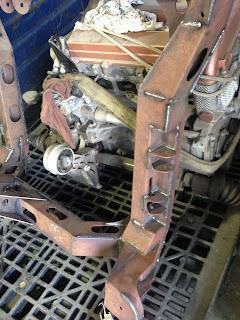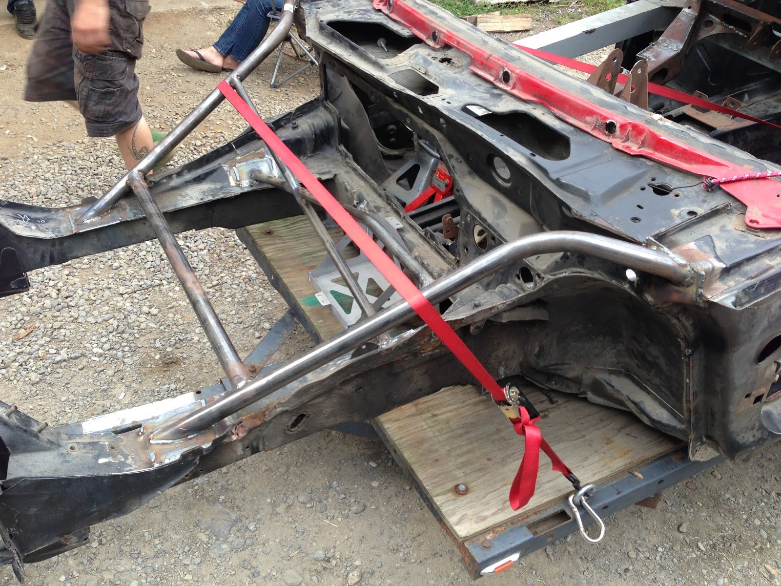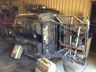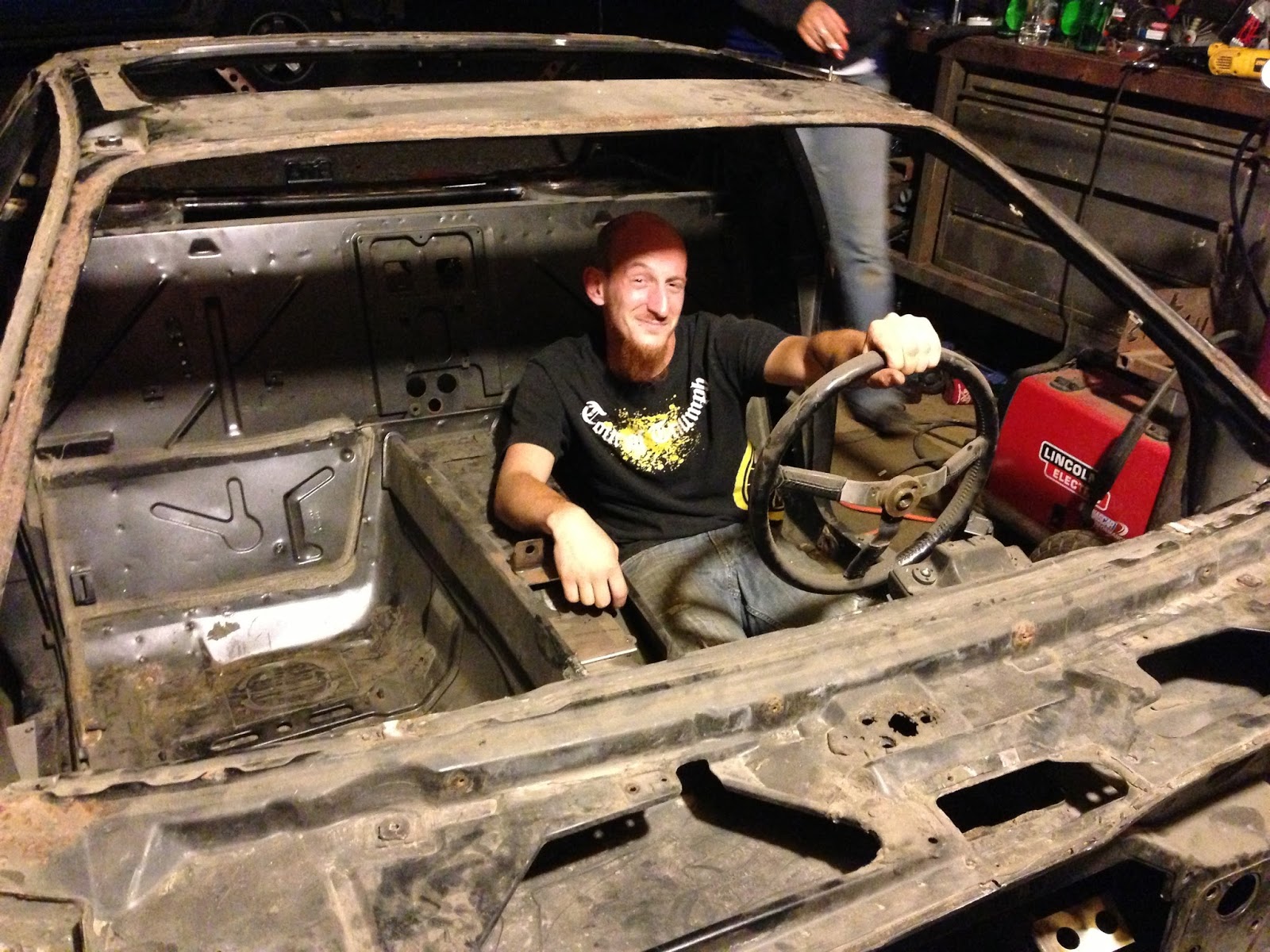 Welded up the chassis this past weekend, towed it to a friends shop (thats my friend in the pic holding the jeep YJ steering wheel) and went to town welding everything together, even got to patching some previous rust damage and got the rear subframe burned in as well. Will keep it short and let the pictures do all the talking.