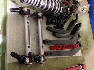 Started painting bits and pieces this week, I was supposed to paint the chassis this weekend though but thanks to the neighbours to the south of Canada and their desire to have Thanksgiving 8 weeks after the true and proper thanksgiving day my paint was delayed and won't be in till monday or tuesday. So I have been stuck doing more final welding, priming and painting of various small parts, actually I've been able to get almost all the suspension completely painted, hubs, sway bar arms, etc, I'm going to be in really good shape when I finally get the chassis painted, its going to be a installation frenzy of parts being installed.