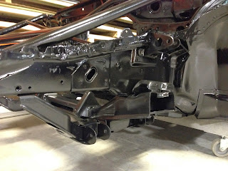 Started putting the car together last night, didn't spend too much time on it, just long enough to bolt in the front suspension subframe and the upper coilover brackets. I did get a bunch of new fasteners to put it back together, I figured why use rusty 25+ year old bolts on such a shiny new car......didn't think that M12 bolts would cost so much, kinda blew my mind when I started looking at prices and availability.